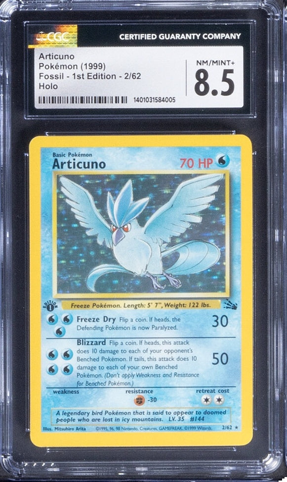 1999 Pokemon Articuno 2/62 1st Edition Fossil Holo CGC 8.5