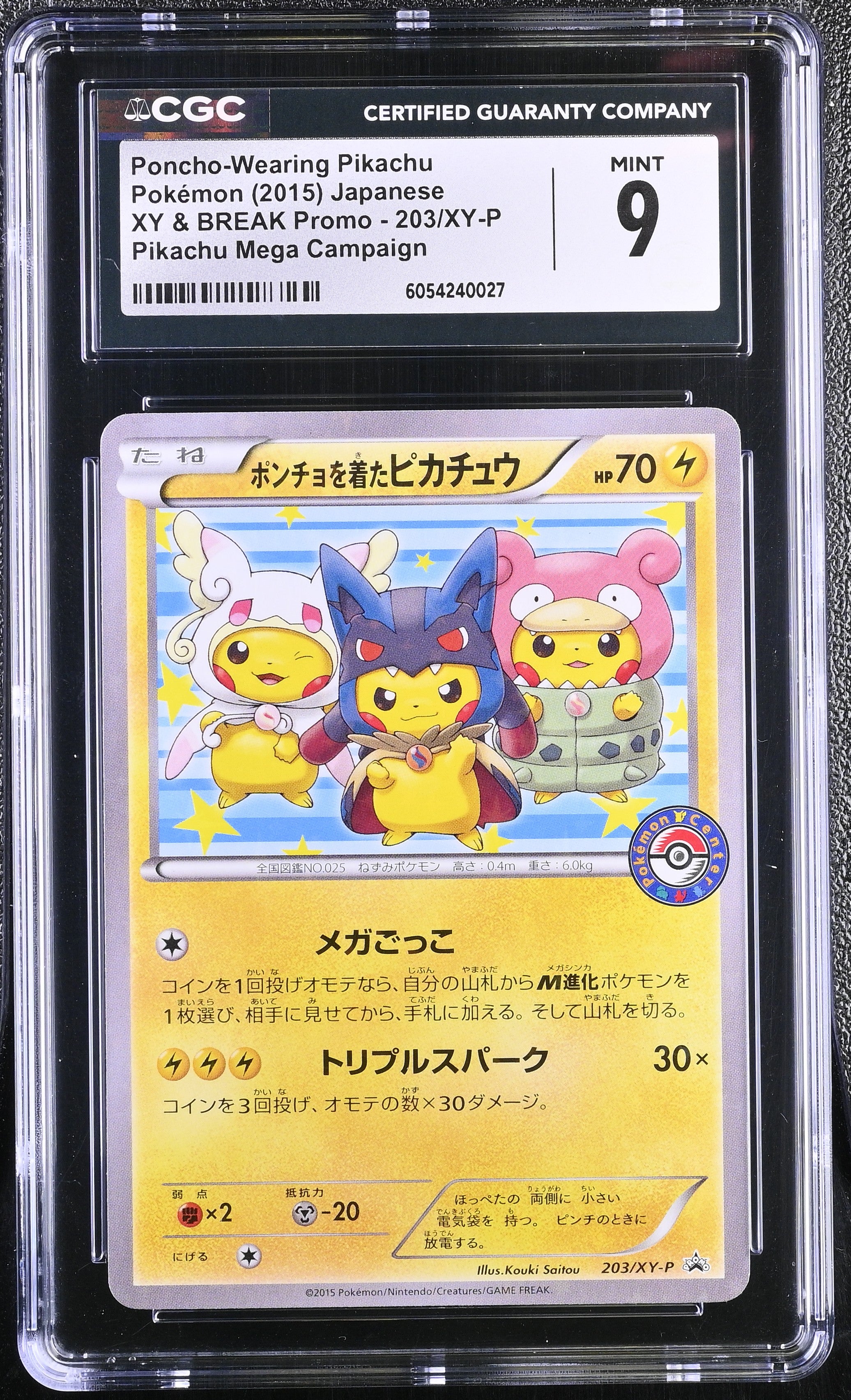 2015 Pokemon Japanese Poncho-Wearing Pikachu 203/XY-P XY & XY BREAK Promo CGC 9