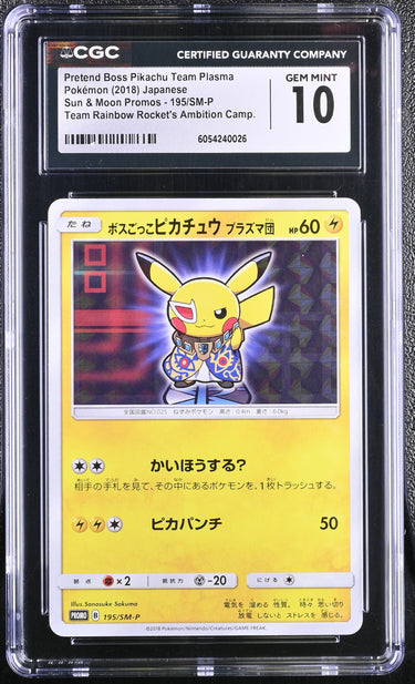 2018 Pokemon Japanese Pretend Boss Pikachu Team Plasma 195/SM-P CGC 10